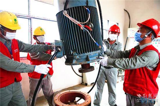 鄂城公司得悉千畝湖泵站增容的情況后,運檢、物資、檢修建造工區(qū)靈敏發(fā)起聯(lián)動應(yīng)急模式,相互配合。鄂城公司物資中心調(diào)運的315千伏安的變壓器被拉到現(xiàn)場,碧石供電所的工程車從鄂城公司將電纜相應(yīng)的配電柜設(shè)備也按預(yù)定時刻趕到了現(xiàn)場。