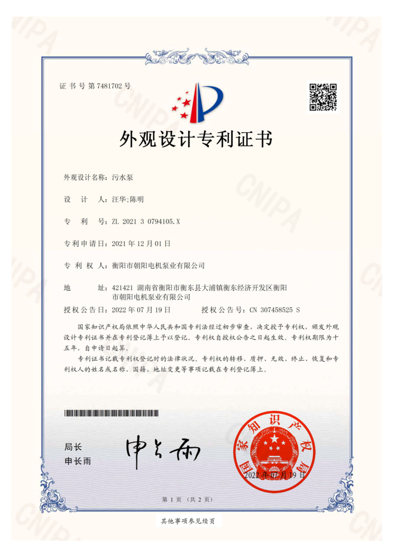 朝陽新一代WQ型污水污物潛水電泵-普通款不僅在外觀上有巨大的突破——采用了流暢的外殼和一體化自帶攔污網格設計,并申請獲得了污水泵外觀設計專利。而且,在功率提升的同時,價格同比下降約20%以上。